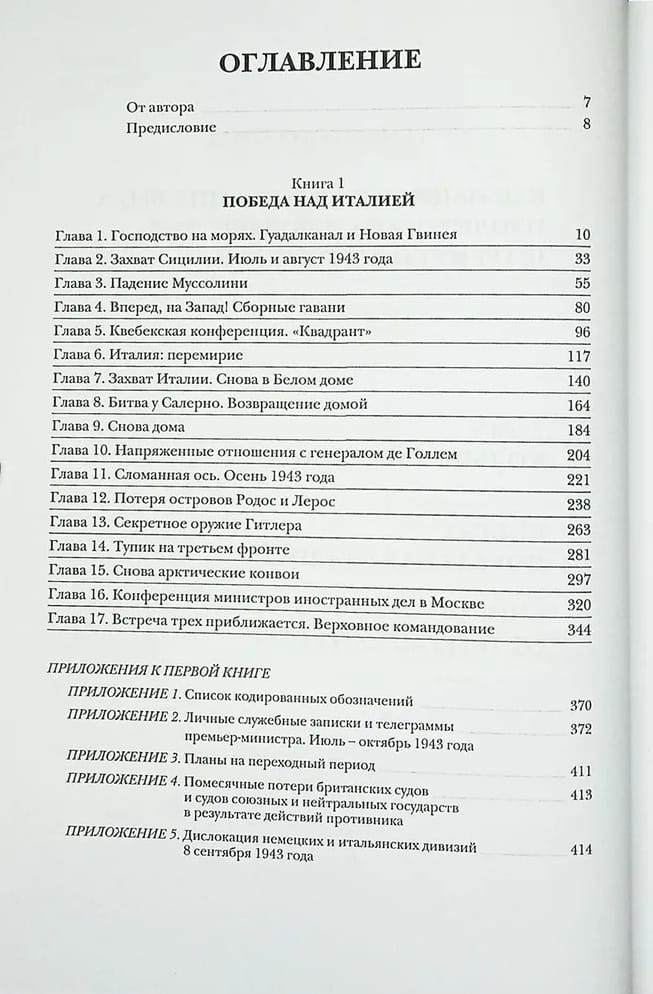 Содержание девятой книги «Победа над Италией» описывает события лета и осени 1943 года — захват Сицилии и Италии силами союзников, падение фашистского режима Муссолини и подготовку к операции «Оверлорд».