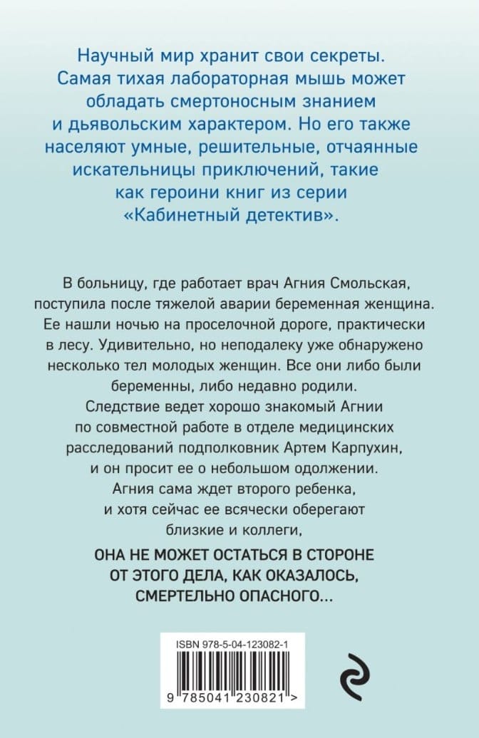 В больницу, где работает врач Агния Смольская, поступила после тяжелой аварии беременная женщина. Ее нашли ночью на проселочной дороге, практически в лесу. Удивительно, но неподалеку уже обнаружено несколько тел молодых женщин. Все они либо были беременны, либо недавно родили. Следствие ведет хорошо знакомый Агнии по совместной работе в отделе медицинских расследований подполковник Артем Карпухин, и он просит ее о небольшом одолжении. Агния сама ждет второго ребенка, и хотя сейчас ее всячески оберегают близкие и коллеги, она не может остаться в стороне от этого дела, как оказалось, смертельно опасного…
