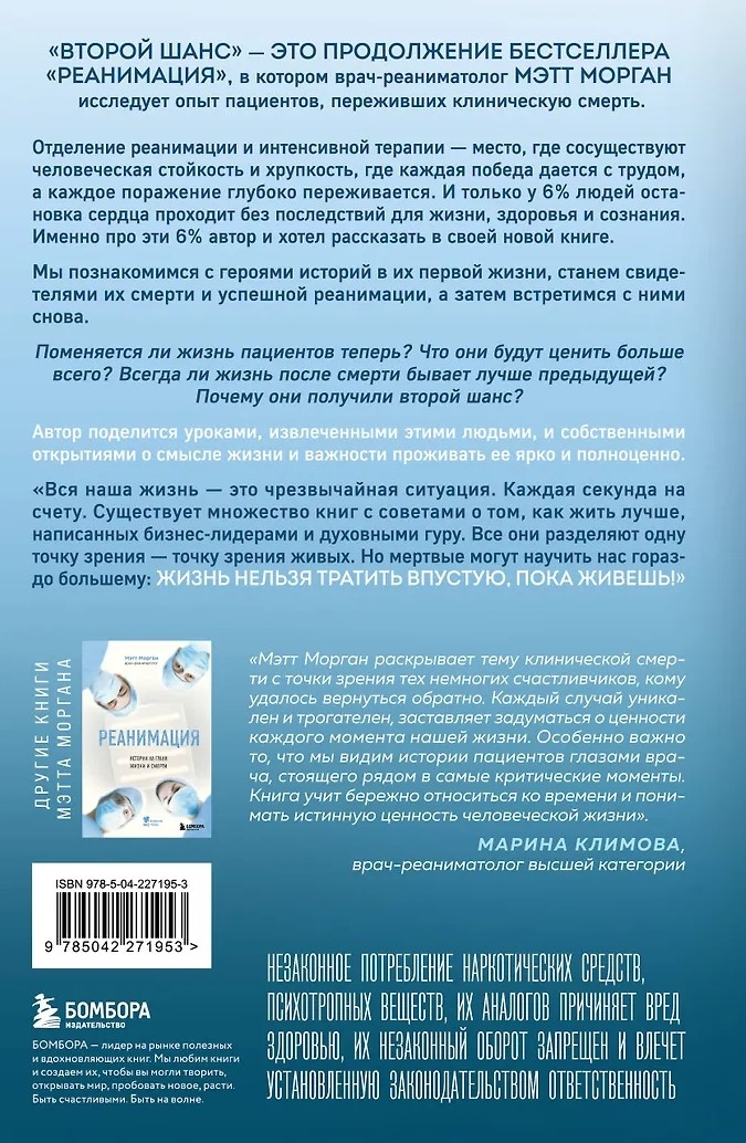 «Второй шанс» — это продолжение бестселлера «Реанимация», в котором врач-реаниматолог Мэтт Морган исследует опыт пациентов, переживших клиническую смерть.