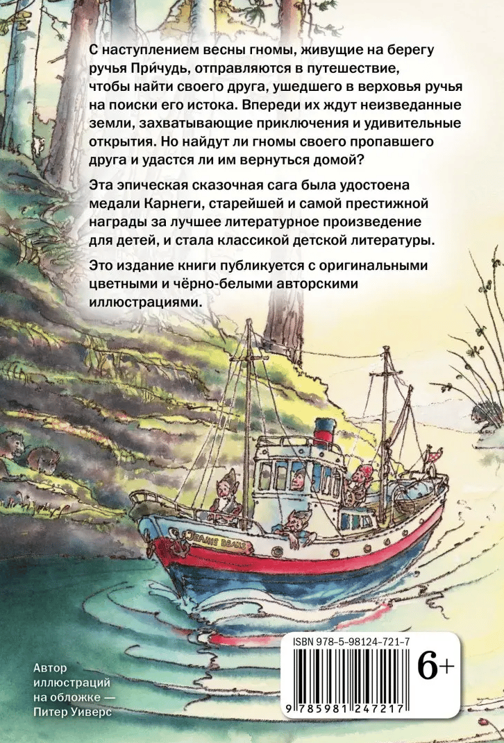Специальное издание эпической сказочной саги о приключениях трёх гномов, отправившихся на поиски своего друга в верховья ручья Прѝчудь, с оригинальными цветными и черно-белыми иллюстрациями автора, лауреат медали Карнеги, самой престижной награды за лучшее литературное произведение для детей.