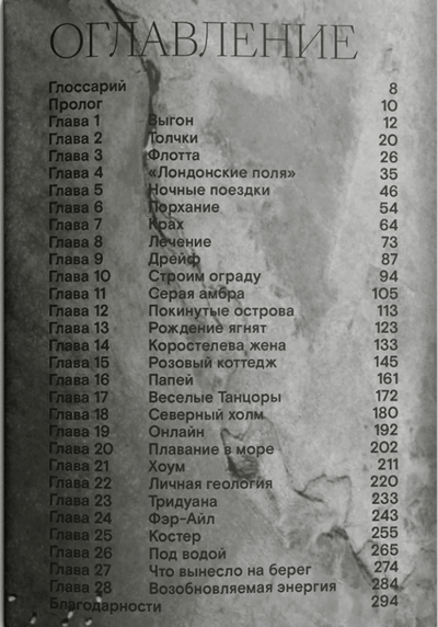 Литературный дебют, принесший автору, журналистке Эми Липтрот (род. 1984), премию Уэйнрайта за лучшую книгу о природе за 2016 год и премию британского Пен-клуба за лучшую автобиографию (PEN Ackerley Prize) за 2017-й, - это история о побеге из шумного Лондона на заливные луга Оркнейских островов. Изложенная в форме откровенного дневника, она документирует обретение героиней-повествовательницей себя через борьбу с ложными привязанностями (сигареты - кока-кола - отношения - интернет), которые пришли на смену городским опытам с алкоголем и наркотиками. Когда-то юная Эми покинула удаленный остров архипелага на северо-востоке Шотландии, чтобы завоевать столицу королевства, пополнив легион фриланс-работников креативных индустрий. Теперь она совершает путешествие назад, попутно открывая дикую мощь Атлантического океана и примиряя прошлое с настоящим. То, что началось как вынужденная самоизоляция, обернулось рождением новой жизни. Книга стала заметным событием в современной британской прозе, породив моду на полузабытый уголок шотландского побережья.
