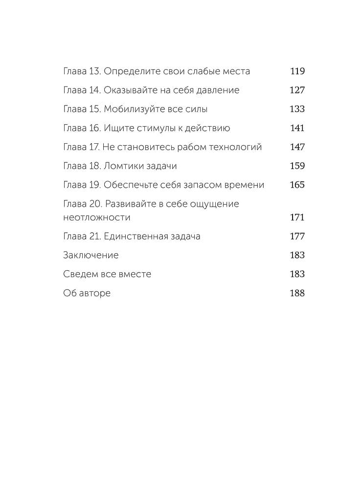 В книге представлен результат более чем тридцатилетнего изучения вопросов распределения времени. Она рассказывает о том, как добиваться решения сложных задач, выходя из зоны комфорта.