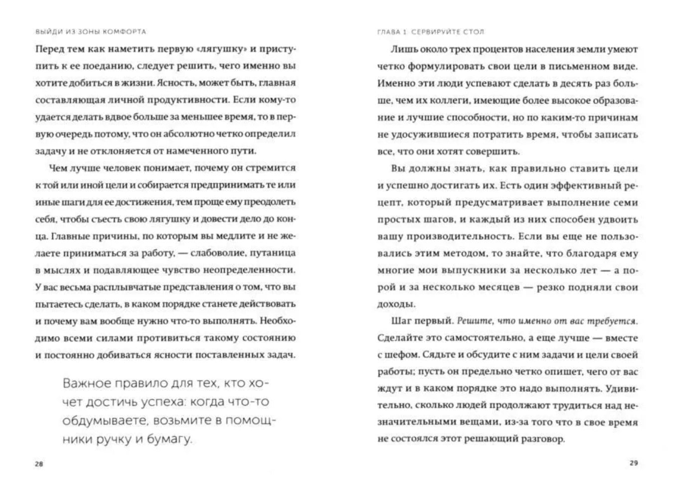 Книга № 1 по саморазвитию в формате покетбука. Она переведена на 40 языков. Куплено более 1 200 000 экземпляров. Эта книга сделала Брайна Трейси тем, кто он есть сейчас — звездой и гуру для всех, кто стремится к эффективности.