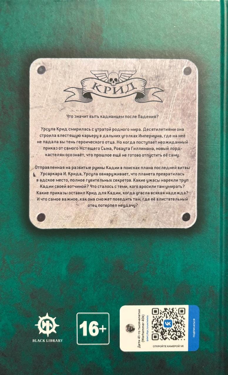 Урсула Крид смирилась с утратой родного мира. Десятилетиями она строила блестящую карьеру в дальних уголках Империума, где на неё не падала бы тень героического отца. Но когда поступает неожиданный приказ от самого Мстящего Сына, Робаута Гиллимана, новый лорд- кастелян осознаёт, что прошлое ещё не готово отпустить её саму.