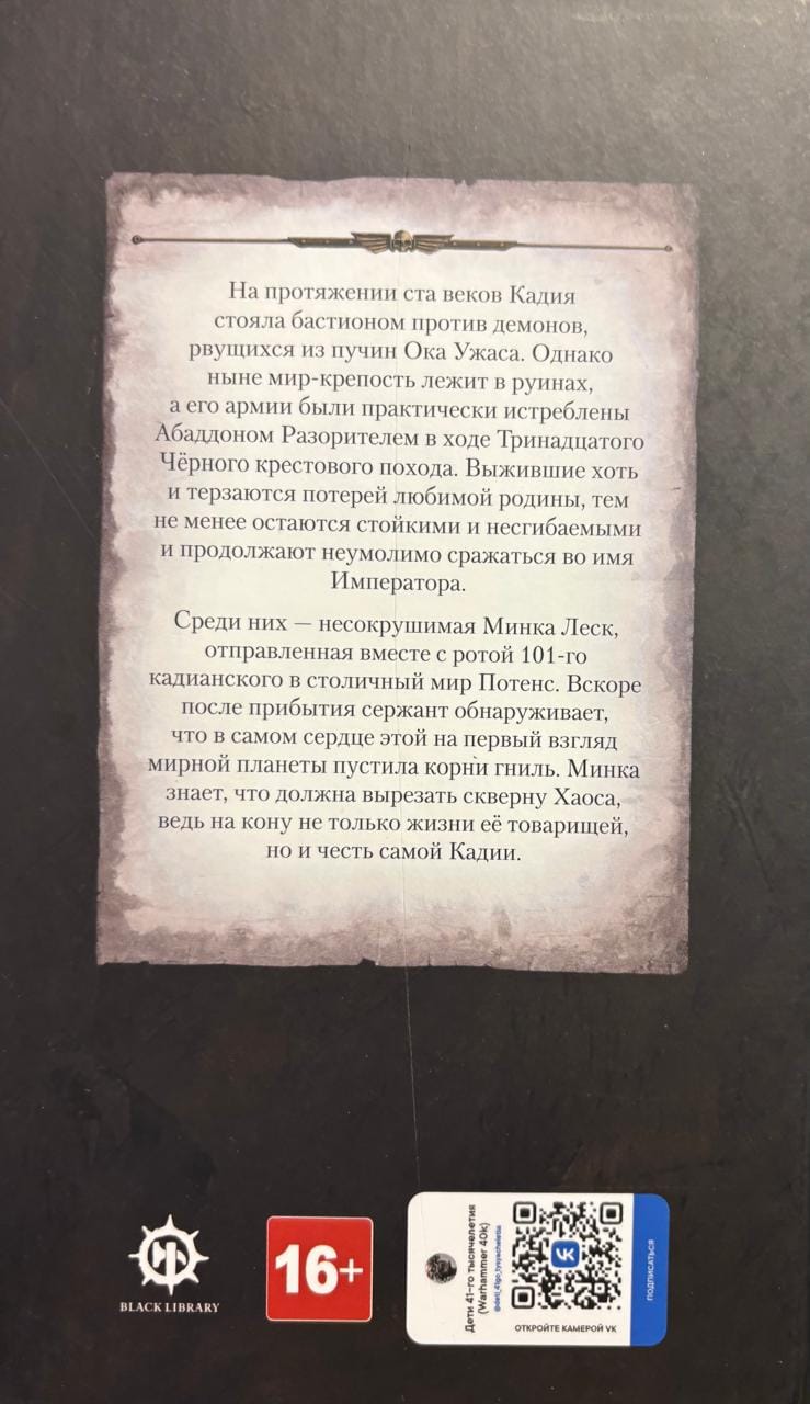 Кадия, сто веков стоявшая грозным бастионом против Хаоса, сокру шена. Её уничтожение Абаддоном Разорителем и Тринадцатым Чёрным крестовым походом раскололо Империум Человека, что повлекло за со бой распространение ереси, лжи и бунтарских настроений. Выжившим кадианцам — окровавленным, но несломленным, — предстоит сражаться во имя Императора дальше.
