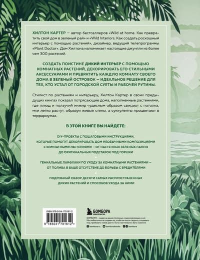 Стилист по растениям и дизайнер интерьеров Хилтон Картер в своих предыдущих книгах показал потрясающие дома, наполненные растениями, где плющ и ползучий инжир чудесным образом свисают с потолка, мхи легко растут, образуя живые стены, а суккуленты процветают в террариумах.