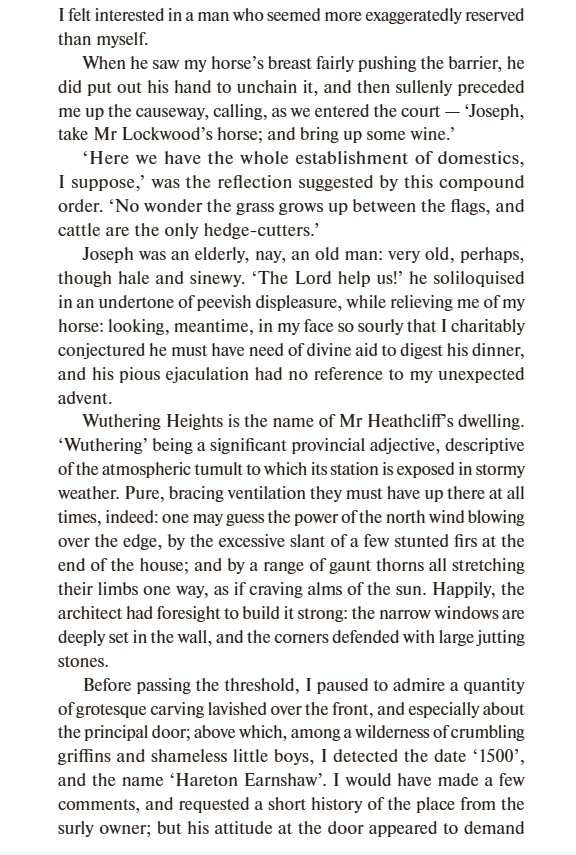 Кэтрин — женщина, пытающаяся жить по своим правилам, сирота Хитклиф, раса и этнос которого оспариваются до сих пор, старый семейный особняк, затерянный посреди вересковых пустошей Йоркшира, явления призраков и смена ненадежных рассказчиков — все это прекрасно образованная Бронте сплетает в загадочное, будоражащее воображение повествование.