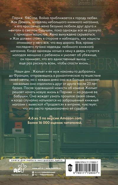 Париж, 1940 год: война приближается к городу любви. Жак Дюваль, владелец небольшого книжного магазина, и его красавица-жена безумно любили друг друга и мечтали о светлом будущем, пока однажды все не рухнуло с приходом нацистов. Жена вынуждена скрываться, и Жак должен стоять