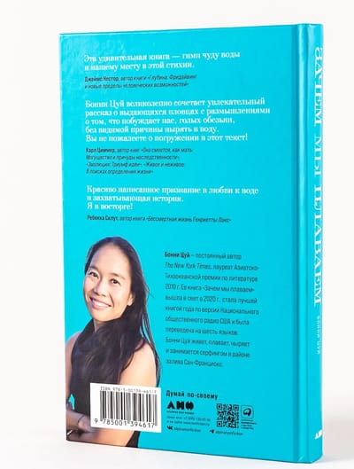 Эта захватывающая книга о благотворном влиянии воды на человеческое тело и разум основана на историях реальных людей. Среди них и олимпийские чемпионы, и современные последователи самурайского стиля плавания нихон эйхо, и исландский рыбак, чудом выживший после того, как провел более шести часов в ледяной воде. Постоянный автор The New York Times Бонни Цуй сама с детства занимается плаванием, и ее личный опыт — от заплывов в холодных водах залива Сан-Франциско до преодоления вплавь озера Джордж в день собственной помолвки — стал темой не менее захватывающих страниц.