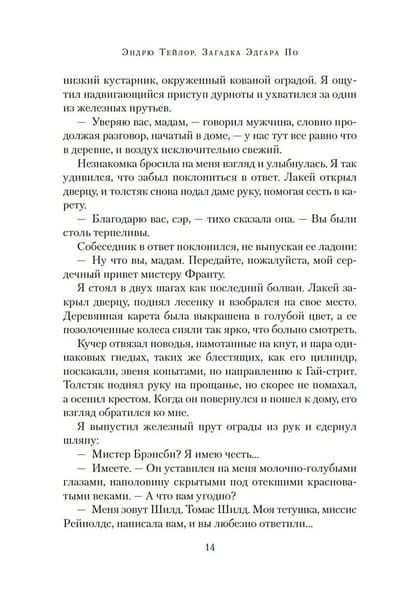 Англия времен Регентства, 1819 год. Вопреки отсутствию рекомендаций Томас Шилд получает место помощника учителя в пригороде Лондона. Среди его учеников — юный американец Эдгар По, приемный сын Алланов, и его лучший друг, избалованный неженка Чарльз Франт. Мальчики удивительно похожи друг на друга... Томас влюбляется в красивую, но не слишком счастливую мать Чарльза и постепенно увязает в паутине чужих семейных тайн и интриг. Когда на задворках столицы находят обезображенный труп, все улики указывают на семью Франт. Поневоле втянутый в эту запутанную историю, Шилд понимает, что у него более чем достаточно причин для беспокойства. А вскоре выясняется, что в центре этих жутких событий фигурирует маленький американец...