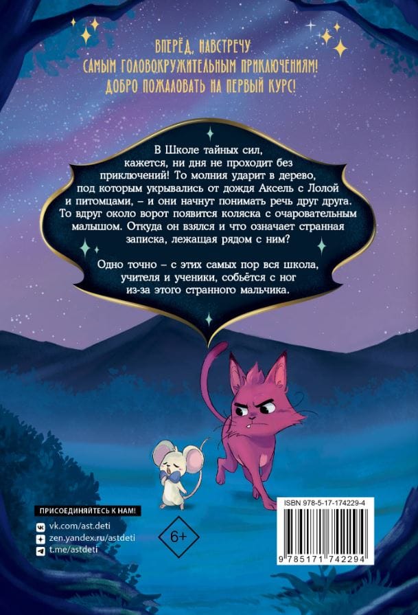В Школе тайных сил, кажется, ни дня не проходит без приключений! То молния ударит в дерево, под которым укрывались от дождя Аксель с Лолой и питомцами, – и они начнут понимать речь друг друга. То вдруг около ворот появится коляска с очаровательным малышом. Откуда он взялся и что означает странная записка, лежащая рядом с ним? Одно точно – с этих самых пор вся школа, учителя и ученики, собьётся с ног из-за этого странного мальчика.
