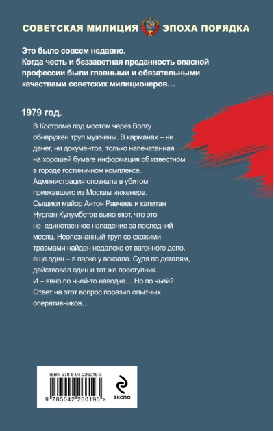1979 год. В Костроме под мостом через Волгу обнаружен труп мужчины. В карманах — ни денег, ни документов, только напечатанная на хорошей бумаге информация об известном в городе гостиничном комплексе. Администрация опознала в убитом приехавшего из Москвы инженера. Сыщики майор Антон Равчеев и капитан Нурлан Кулумбетов выясняют, что это не единственное нападение за последний месяц. Неопознанный труп со схожими травмами найден недалеко от вагонного депо, еще один — в парке у вокзала. Судя по деталям, действовал один и тот же преступник. И явно по чьей-то наводке… Но по чьей? Ответ на этот вопрос поразил опытных оперативников…