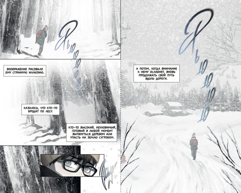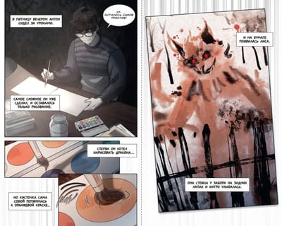 Стильное оформление, концептуальная обложка, пугающая атмосферная история, а также уникальный дополнительный материал в конце книги — всё это ждёт вас в комиксе «Зайчик», который имеет ещё и формат вебтуна!