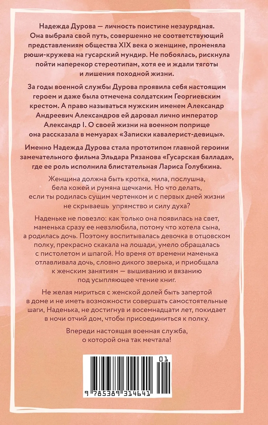 «Записки кавалерист-девицы» — это не только мемуары обладательницы крайне нетипичной судьбы для женщины начала XIX века — судьбы солдата и кавалерийского офицера, но и честная книга о том, как выбрав собственный путь по зову сердца, а не по наставлению родителей и давлению общества, можно стать счастливой и воплотить свои мечты в жизнь.