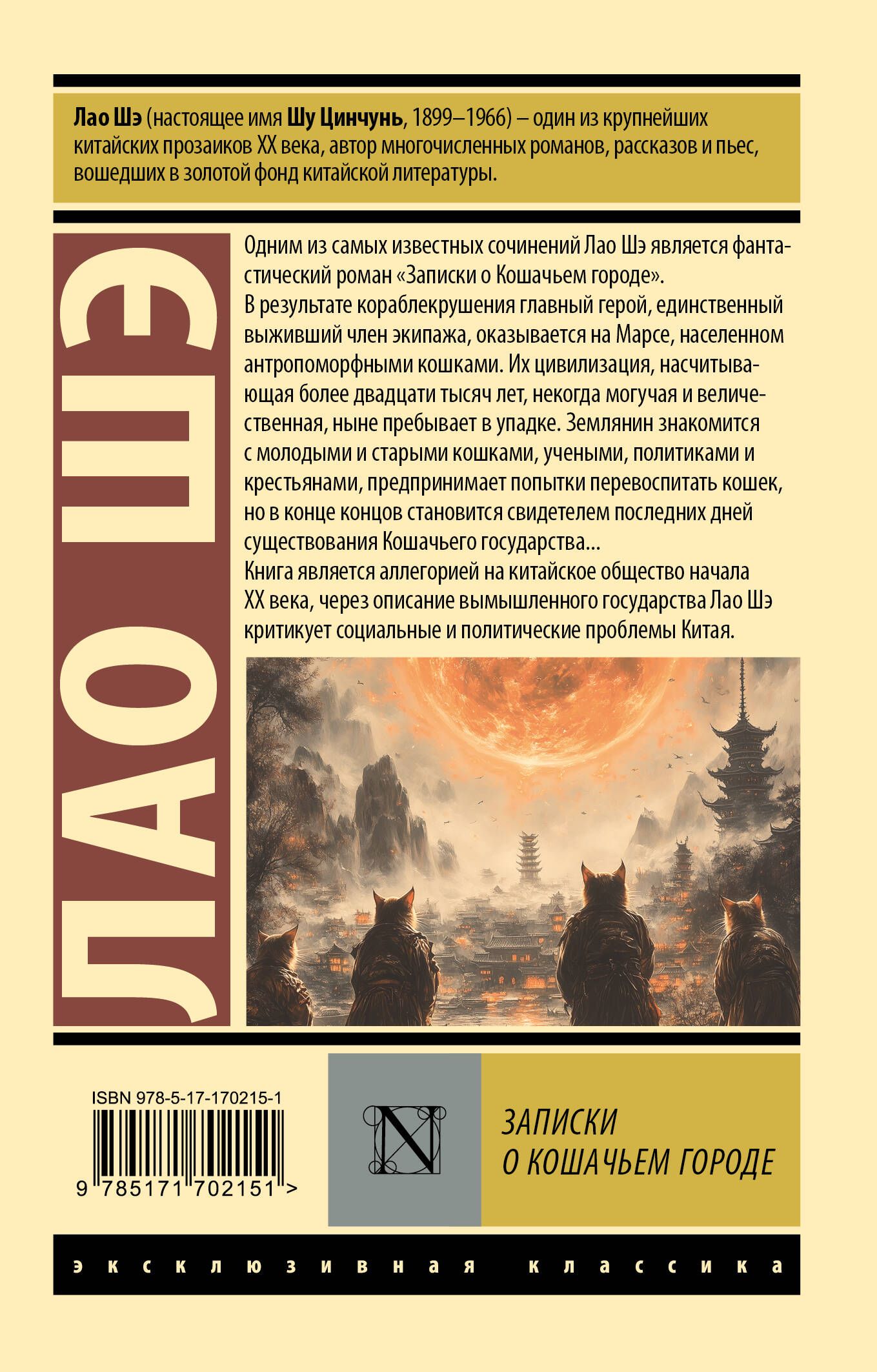 Одним из самых известных сочинений Лао Шэ является фантастический роман «Записки о Кошачьем городе».