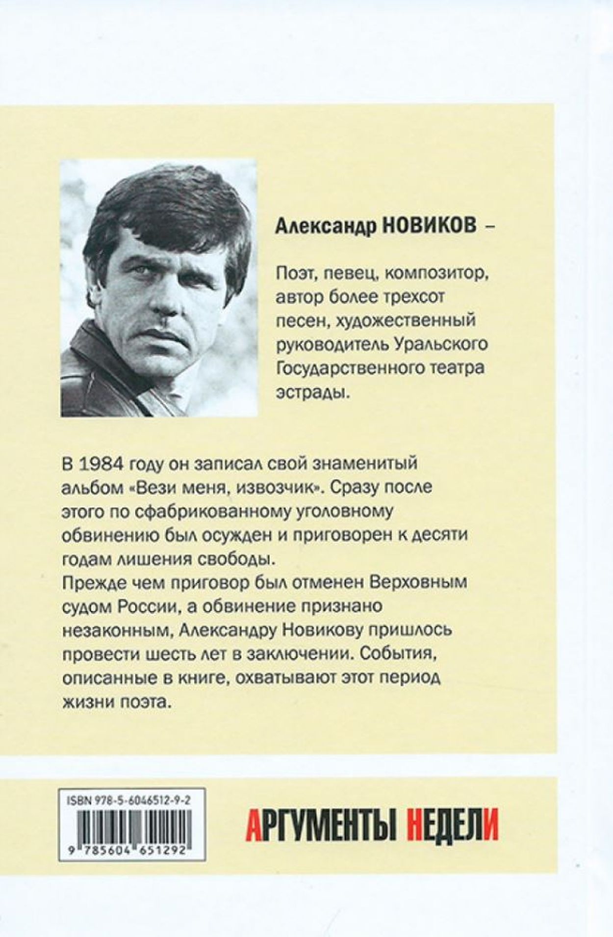 Александр Новиков — поэт, певец, композитор, автор более трехсот песен и художественный руководитель Уральского Государственного театра эстрады. В 1984 году он записал свой знаменитый альбом «Вези меня, извозчик». Сразу после этого по сфабрикованному уголовному обвинению был осужден и приговорен к десяти годам лишения свободы. Прежде чем приговор был отменен Верховным судом России, а обвинение признано незаконным, Александру Новикову пришлось провести шесть лет в заключении. События, описанные в книге, охватывают этот период жизни поэта.