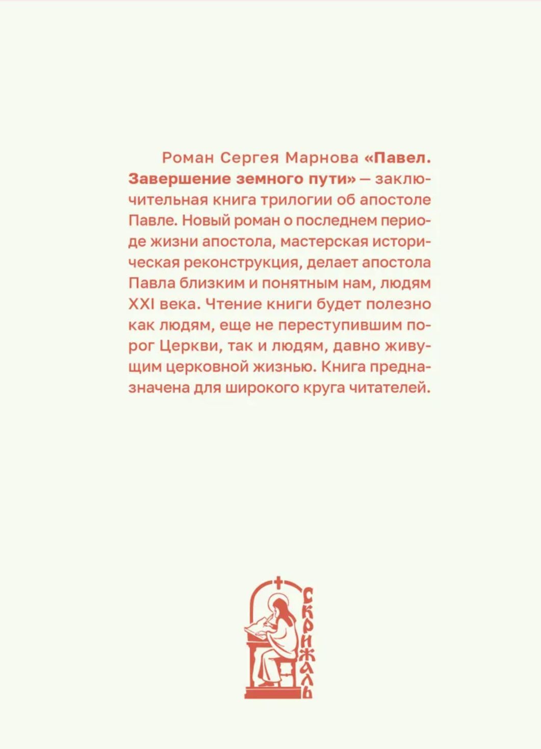 Завершающая книга трилогии об апостоле Павле. Новый роман о последнем периоде жизни апостола Павла близким и понятным нам , людям ХХI века. Чтение книги будет полезно как людям, еще не переступившим порог Церкви, так и людям, давно живущим церковной жизнью.