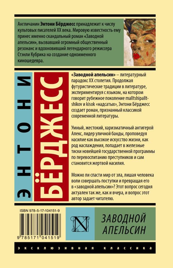 Заводной апельсин – литературный парадокс ХХ столетия. Продол-жая футуристические традиции в литературе, экспериментируя с языком, на котором говорит рубежное поколение malltshipalltshikov и kisok "надсатых", Энтони Бёрджесс создает роман, признанный классикой современной литературы. Умный, жестокий, харизматичный антигерой Алекс, лидер уличной банды, проповедуя насилие как высокое искусство жизни, как род наслаждения, попадает в железные тиски новейшей государственной программы по перевоспитанию преступников и сам становится жертвой наси-лия. Можно ли спасти мир от зла, лишая человека воли совершать пос-тупки и превращая его в "заводной апельсин"? Этот вопрос сегодня актуален так же, как и вчера, и вопрос этот автор задает читателю.