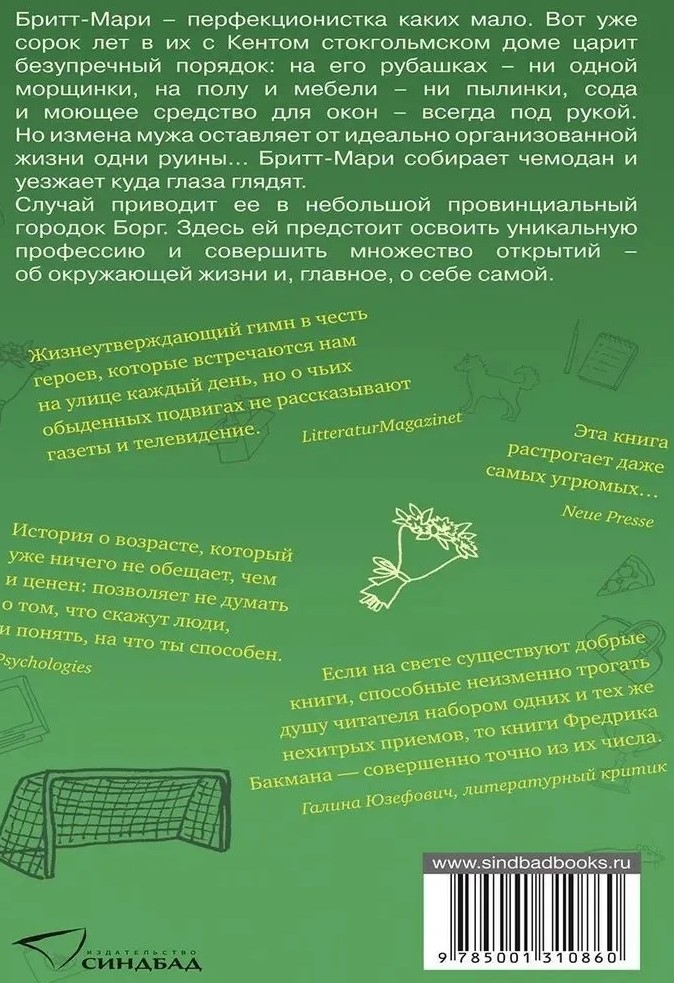Бритт-Мари — не самый легкий в общении человек. Не то чтобы она была как-то особенно упряма, капризна или придирчива — просто свято уверена, что всегда, везде и во всем должен быть абсолютный порядок.