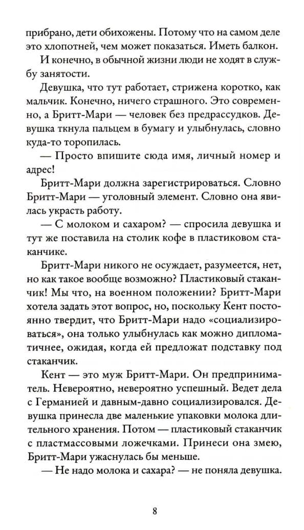 Бритт-Мари — не самый легкий в общении человек. Не то чтобы она была как-то особенно упряма, капризна или придирчива — просто свято уверена, что всегда, везде и во всем должен быть абсолютный порядок.