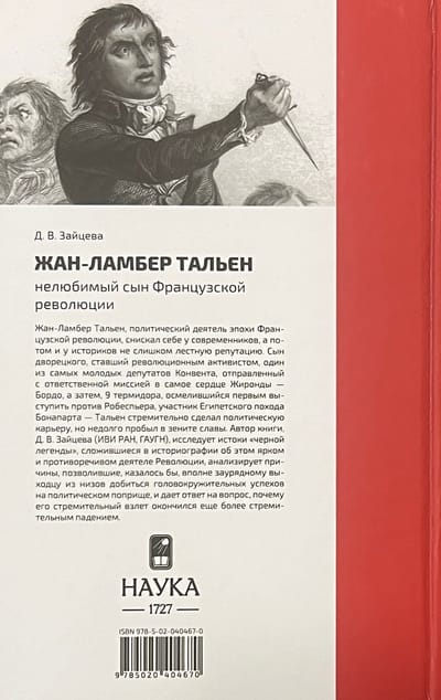 Жан-Ламбер Тальен, политический деятель эпохи французской революции, снискал себе у современников, а потом и у историков не слишком лестную репутацию. Сын дворецкого, ставший революционным активистом, один из самых молодых депутатов Конвента, отправленный с ответственной миссией в самое сердце Жиронды - Бордо, а затем, 9 термидора, осмелившийся первым выступить против Робеспьера, участник Египетского похода Бонапарта - Тальен стремительно сделал политическую карьеру, но недолго пробыл в зените славы. Автор книги, Д. В. Зайцева (ИВИ РАН, ГAYГH), исследует истоки «‎черной легенды»‎, сложившиеся в историографии об этом ярком и противоречивом деятеле Революции, анализирует причины, позволившие, казалось бы, вполне заурядному выходцу из низов добиться головокружительных успехов на политическом поприще, и дает ответ на вопрос, почему его быстрый взлет окончился еще более стремительным падением.