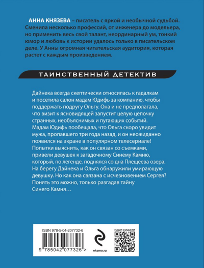 Дайнека всегда скептически относилась к гадалкам и посетила салон мадам Юдифь за компанию, чтобы поддержать подругу Ольгу. Она и не предполагала, что визит к ясновидящей запустит целую цепочку странных, необъяснимых и пугающих событий. Мадам Юдифь пообещала, что Ольга скоро увидит мужа, пропавшего три года назад, и он неожиданно появился на экране в популярном телесериале! Попытки выяснить, как он связан со съемками, привели девушек к загадочному Синему Камню, который, по легенде, поднялся со дна Плещеева озера. На берегу Дайнека и Ольга обнаружили умирающую девушку. Но как она связана с исчезновением Сергея? Понять это можно, только разгадав тайну Синего Камня…