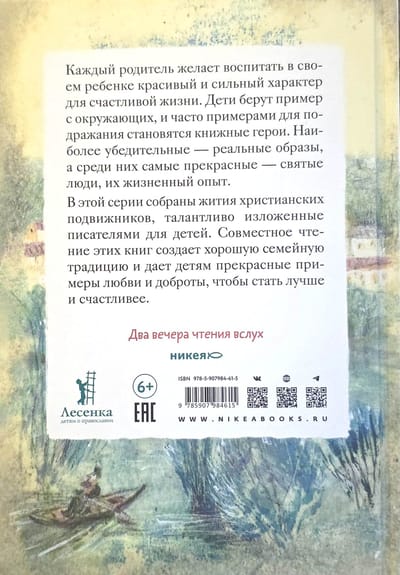 Каждый родитель желает воспитать в своем ребенке красивый и сильный характер для счастливой жизни. Дети берут пример с окружающих, и часто примерами для подражания становятся книжные герои. Наиболее убедительные — реальные образы, а среди них самые прекрасные — святые люди, их жизненный опыт. В этой серии собраны жития христианских подвижников, талантливо изложенные писателями для детей. Совместное чтение этих книг создает хорошую семейную традицию и дает детям прекрасные примеры любви и доброты, чтобы стать лучше и счастливее.