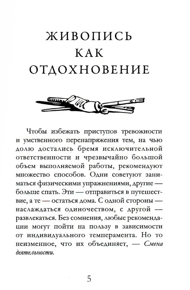 Даже великие умы не могут постоянно думать о судьбах мира — им тоже необходимо на что-то переключаться. Знаменитый британский политик Уинстон Черчилль не только гениально находил решения мировых проблем, но и знал толк в повседневных радостях. Предлагаемое читателю написанное им в свойственной ему ироничной манере эссе дает возможность рассмотреть варианты досуга — и особенно живописи, в которой сам Черчилль весьма преуспел, создав за свою жизнь более 500 картин. Издание проиллюстрировано избранными репродукциями работ автора.