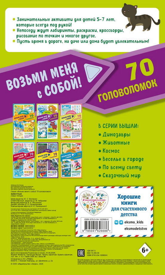 Блокнот «Животные» — это более 70 увлекательных заданий на логику, внимание и воображение для детей 5—7 лет. Найди отличия, пройди лабиринты, реши интересные загадки и раскрась картинки!