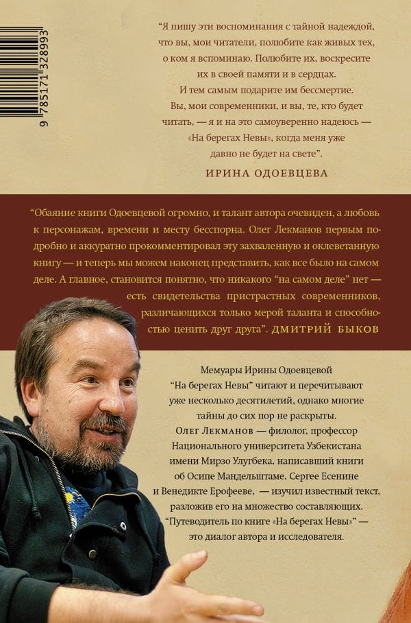 И тем самым подарите им бессмертие. Вы, мои современники, и вы, те, кто будет читать, — я и на это самоуверенно надеюсь — "На берегах Невы", когда меня уже давно не будет на свете". ИРИНА ОДОЕВЦЕВА Мемуары Ирины Одоевцевой "На берегах Невы" читают и перечитывают уже несколько десятилетий, однако многие тайны до сих пор не раскрыты. Олег Лекманов — филолог, профессор Высшей школы экономики, написавший книги об Осипе Мандельштаме, Сергее Есенине и Венедикте Ерофееве, — изучил известный текст, разложив его на множество составляющих. “Путеводитель по книге "На берегах Невы"” — это диалог автора и исследователя. "Обаяние книги Одоевцевой огромно и талант автора очевиден, а любовь к персонажам, времени и месту бесспорна. Олег Лекманов первым подробно и аккуратно прокомментировал эту захваленную и оклеветанную книгу — и теперь мы можем наконец представить, как все было на самом деле. А главное, становится понятно, что никакого "на самом деле" нет — есть свидетельства пристрастных современников, различающихся только мерой таланта и способностью ценить друг друга". ДМИТРИЙ БЫКОВ