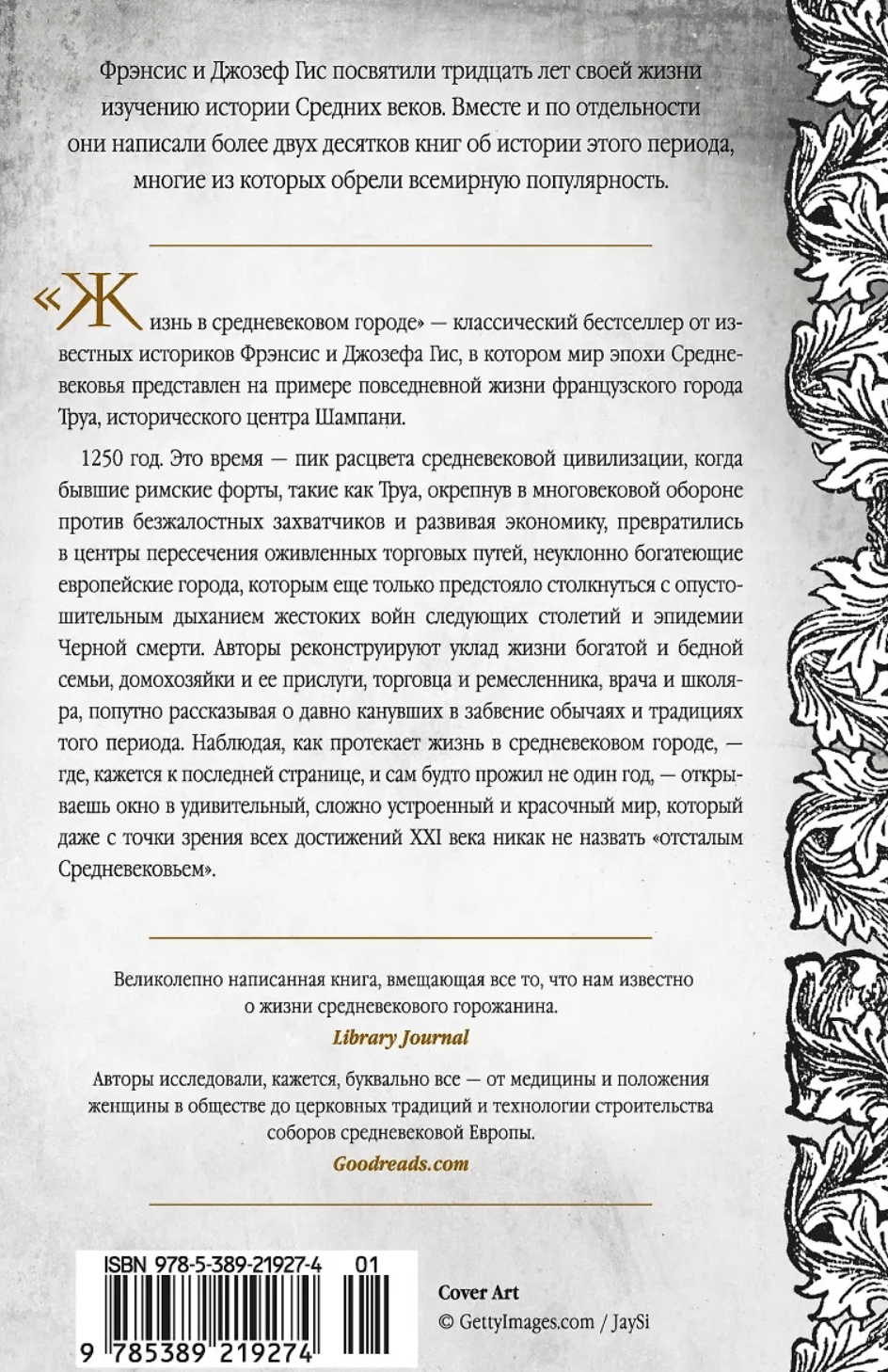 «Жизнь в средневековом городе» — классический бестселлер от известных историков Фрэнсис и Джозефа Гис, в котором мир эпохи Средневековья представлен на примере повседневной жизни французского города Труа, исторического центра Шампани. 1250 год. Это время — пик расцвета средневековой цивилизации, когда бывшие римские форты, такие как Труа, окрепнув в многовековой обороне против безжалостных захватчиков и развивая экономику, превратились в центры пересечения оживленных торговых путей, богатеющие европейские города, которым еще только предстояло столкнуться с опустошительным дыханием жестоких войн следующих столетий и эпидемии Черной смерти.