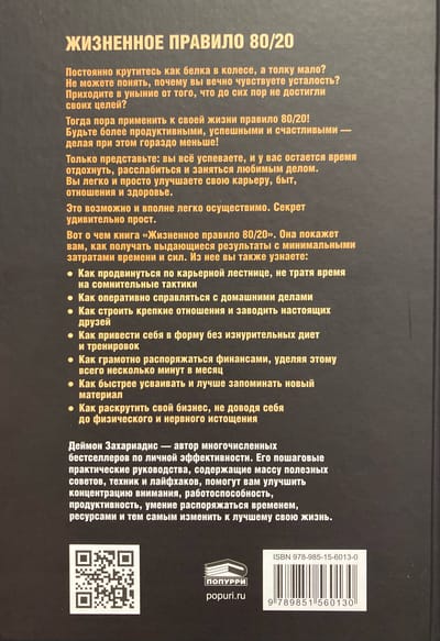 Вот о чем книга «Жизненное правило 80/20». Она покажет вам, как получать выдающиеся результаты с минимальными затратами времени и сил. Из нее вы также узнаете: