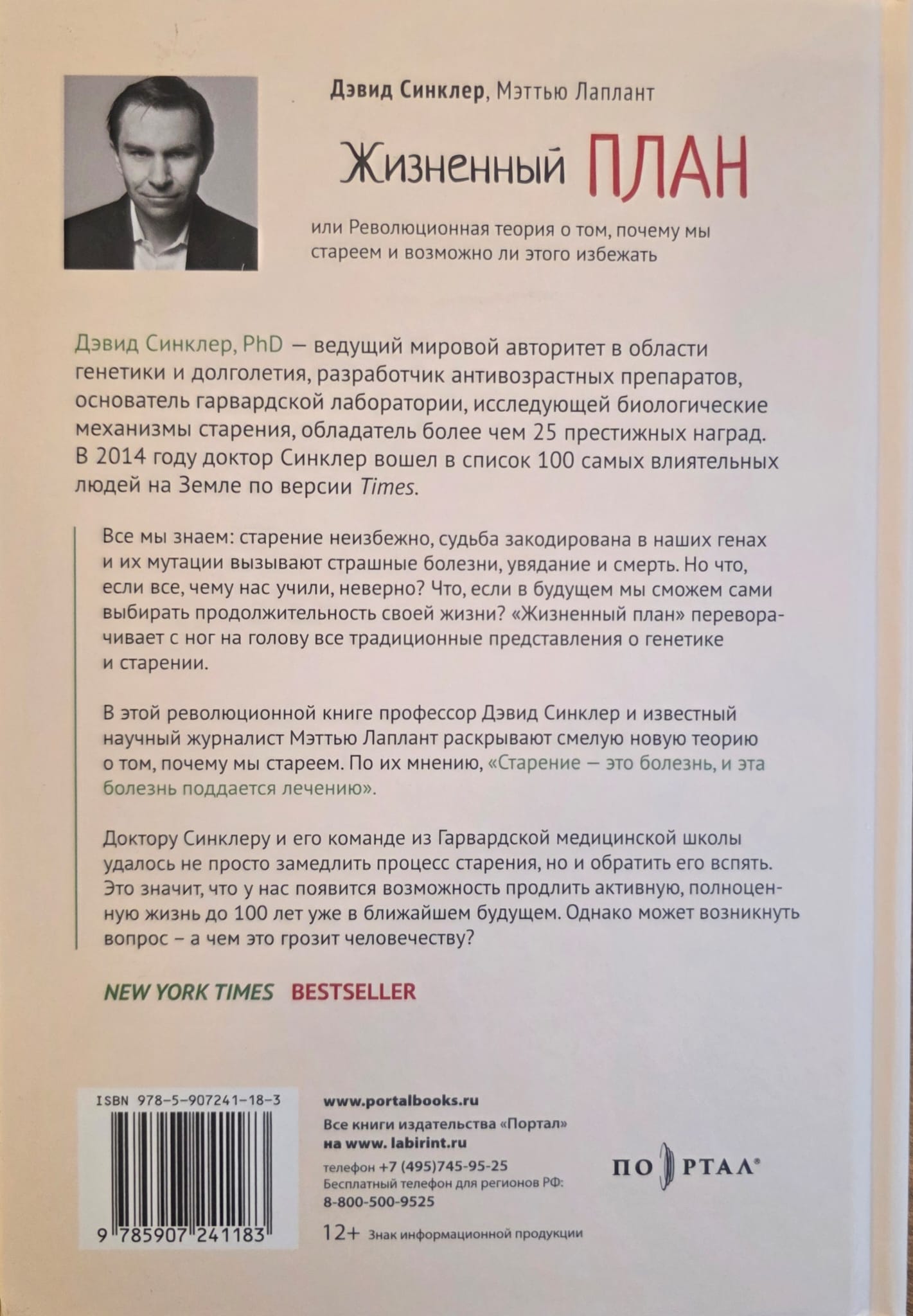 Все мы знаем: старение неизбежно, судьба закодирована в наших генах и их мутации вызывают страшные болезни, увядание и смерть. Но что, если все, чему нас учили, неверно? Что, если в будущем мы сможем сами выбирать продолжительность своей жизни? «Жизненный план» переворачивает с ног на голову все традиционные представления о генетике и старении. Доктору Синклеру и его команде из Гарвардской медицинской школы удалось не просто замедлить процесс старения, но и обратить его вспять. Это значит, что у нас появится возможность продлить активную, полноценную жизнь до 100 лет уже в ближайшем будущем. Однако может возникнуть вопрос: а чем это грозит человечеству?
