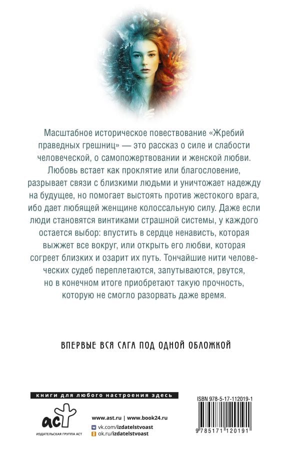 Масштабное историческое повествование «Жребий праведных грешниц» — это рассказ о силе и слабости человеческой, о самопожертвовании и женской любви. Любовь встает как проклятие или благословение, разрывает связи с близкими людьми и уничтожает надежду на будущее, но помогает выстоять против жестокого врага, ибо дает любящей женщине колоссальную силу. Даже если люди становятся винтиками страшной системы, у каждого остается выбор: впустить в сердце ненависть, которая выжжет все вокруг, или открыть его любви, которая согреет близких и озарит их путь. Тончайшие нити человеческих судеб переплетаются, запутываются, рвутся, но в конечном итоге приобретают такую прочность, которую не смогло разорвать даже время.