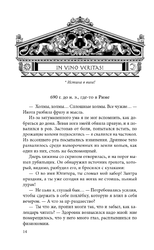 Утопия рушится в праздничный день — Время останавливает ход. Из всех граждан Рима проклятье не касается только двух неприятелей: жреца Бахуса, страдающего синдромом спонтанного опьянения, и Царя священнодействий с тягой к воровству.