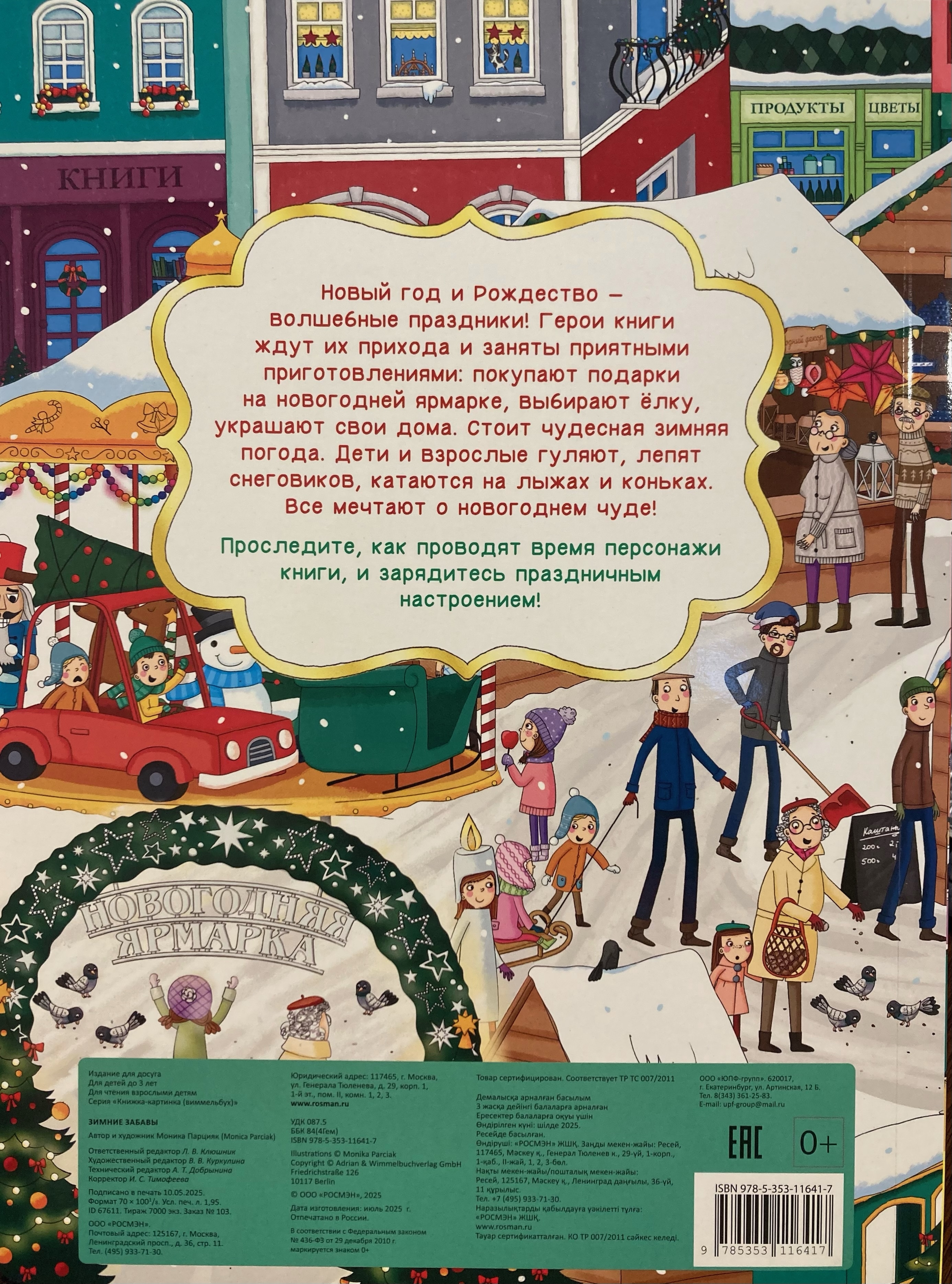 Виммельбух – это книжка, интересная для всех, даже для самых маленьких читателей, еще не выучивших буквы. Рассматривать яркие картинки, придумывать к ним истории, разыскивать любимых героев на разных страницах – занятие и интересное, и полезное. «Зимние забавы» рассказывают и про новогоднюю елку с весельем и подарками, и про катание на лыжах и на коньках, и про лепку снеговиков, и про прогулку в заснеженный лес. Про то, какое волшебное и чудесное время – зима! Большой формат дает возможность во всех подробностях рассмотреть красочные детализированные иллюстрации со множеством интересных сюжетов, плотный картон позволит перечитывать любимую книжку много-много раз.