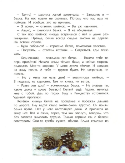 Эта добрая зимняя сказка переносит читателя в опустевший дачный посёлок, где мёрзнет и грустит маленький, пушистый и очень голодный бездомный котёнок. И, кажется, уже никто не может ему помочь. Но, как это бывает на Рождество, начинают происходить неожиданные события и настоящие чудеса. В посёлке появляются люди, на участке наряжают ёлку, а у тех, кто не бросит друга в беде, кто отважно придёт на помощь, кто умеет терпеть, любить и быть благодарным, осуществляются заветные мечты.