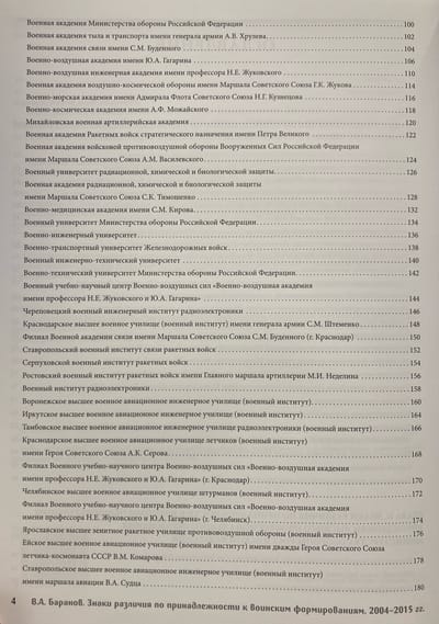 Справочник содержит официально учрежденные нормативно-правовыми актами Министерства обороны Российской Федерации геральдические знаки различия по принадлежности военно-учебных заведений, учебных центров и учебных войсковых частей МО РФ в период 2004–2015 г. Он состоит из трех крупных глав: