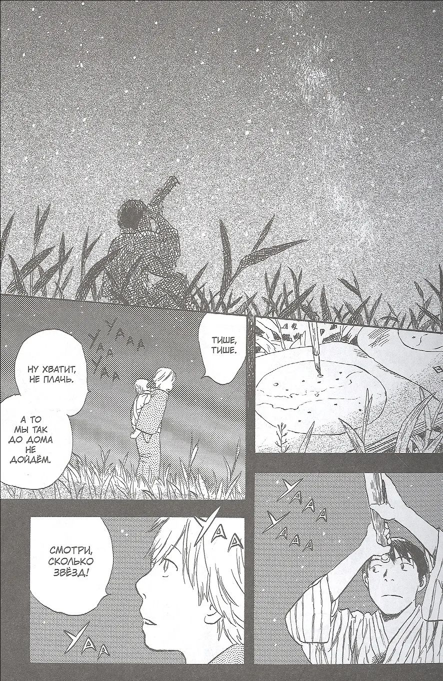 Незаметные существа муси — низшая форма жизни. Однако для человека они могут стать опаснее самого свирепого хищника или стихийного бедствия. Путешествие знатока муси Гинко продолжается. Он встречает девушку, увидевшую, как с неба свисает нить, рыболова-отшельника, удачливого охотника, парня, не выносящего тепло, и искусного винокура. Все они страдают от муси, но чтобы с ними справиться, одной помощи Гинко будет мало.