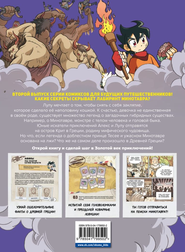 По совету своей новой напарницы, Лулу, Алекс отправляется в Грецию, мифология которой столь многогранна. Здесь он встречает группировку искателей сокровищ «Фиолетовый дым», которая шумно празднует находку настоящих, как они утверждают, останков Минотавра.