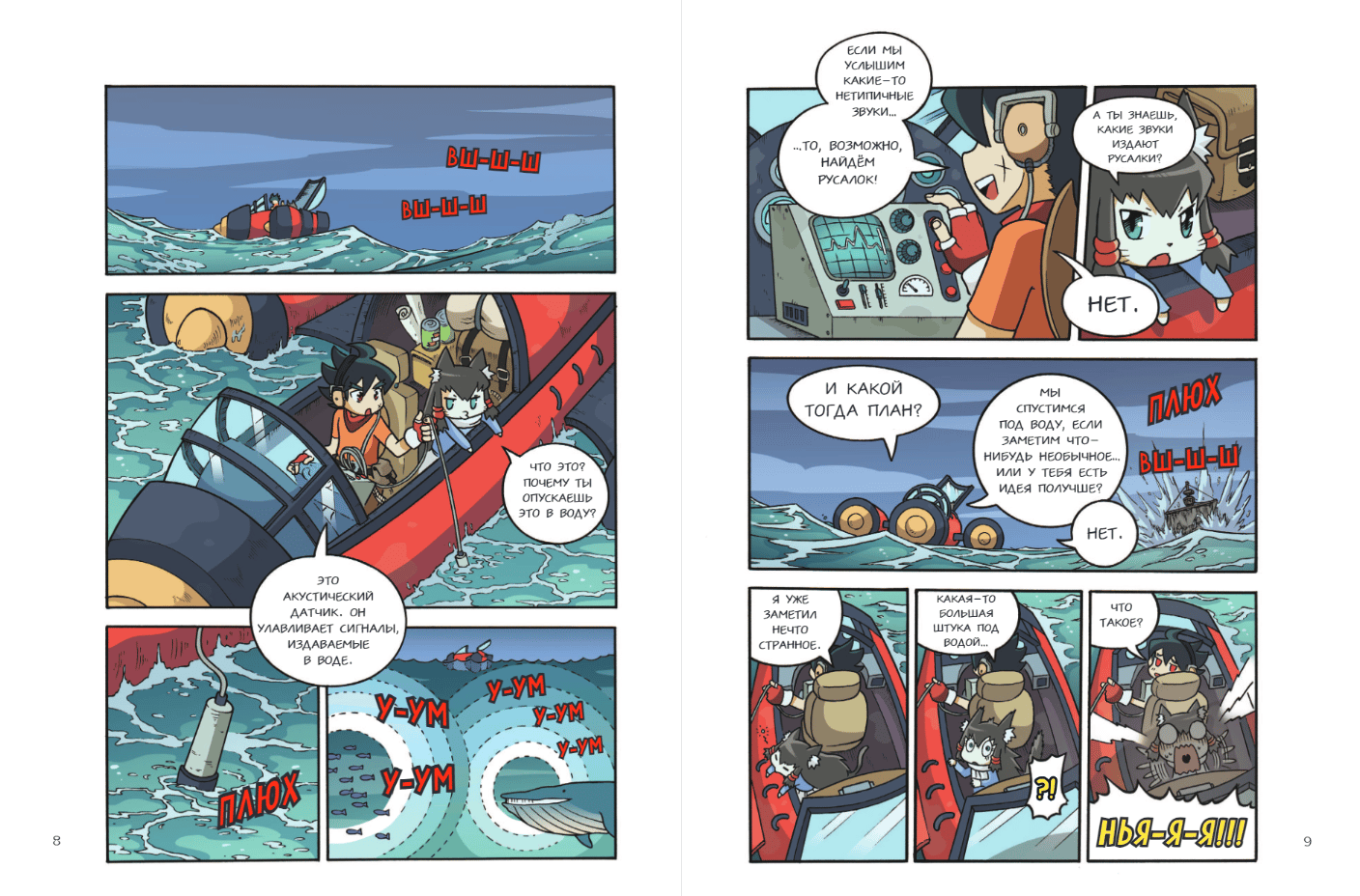 Узнайте об исторических событиях и легендах, связанных с Тихим океаном, познакомьтесь с устройством субмарин и аквалангов, выучите язык дайверов и решите логические задачи. Чтение комиксов ещё никогда не было таким полезным!