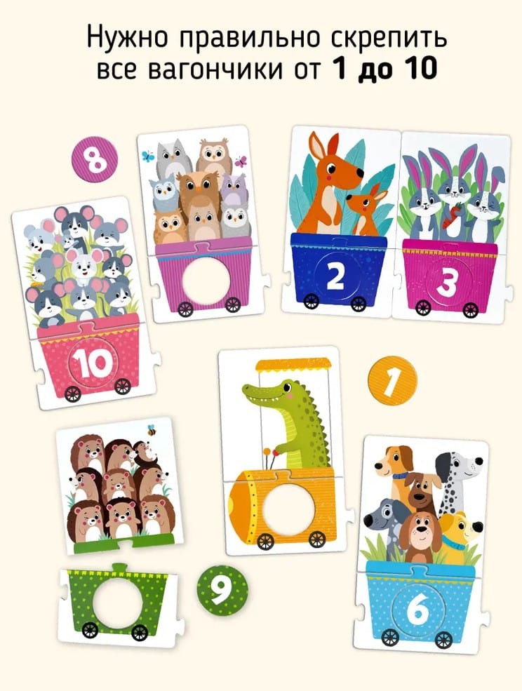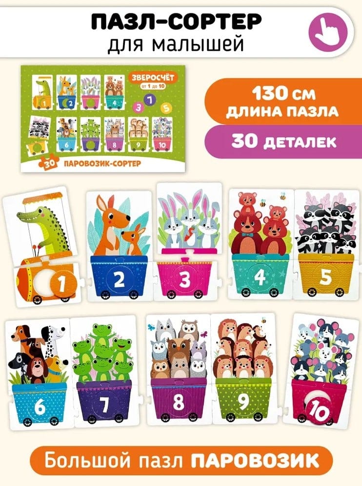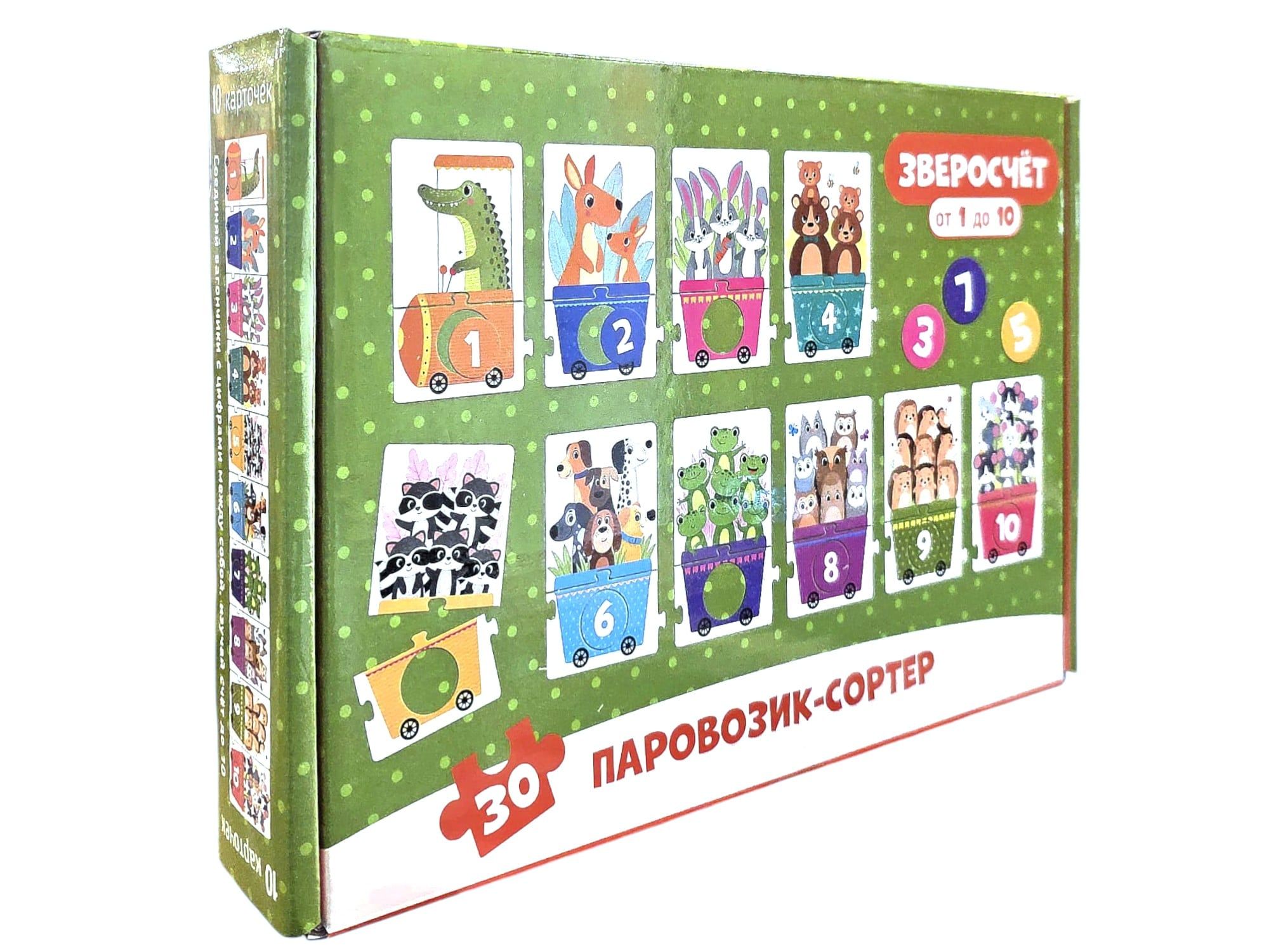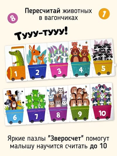Тууу-туууу! Встречайте веселый пазл-сортер «Зверосчёт» — ваш билет в увлекательное путешествие по миру цифр!