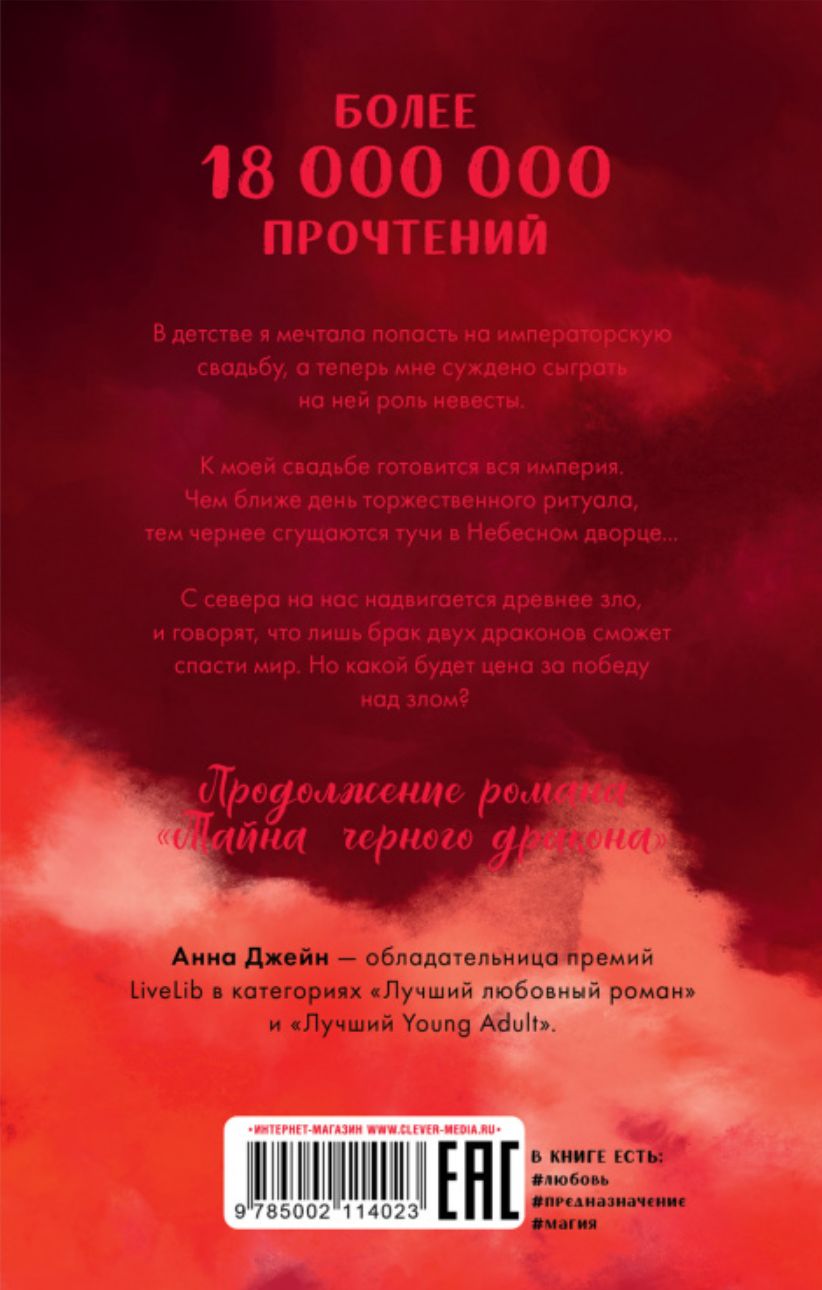 В детстве я мечтала попасть на императорскую свадьбу, а теперь мне суждено сыграть на ней роль невесты. К моей свадьбе готовится вся империя. Чем ближе день торжественного ритуала, тем чернее сгущаются тучи в Небесном дворце...С севера на нас надвигается древнее зло, и говорят, что лишь брак двух драконов сможет спасти мир. Но какой будет цена за победу над злом? Продолжение романа «Тайна черного дракона».